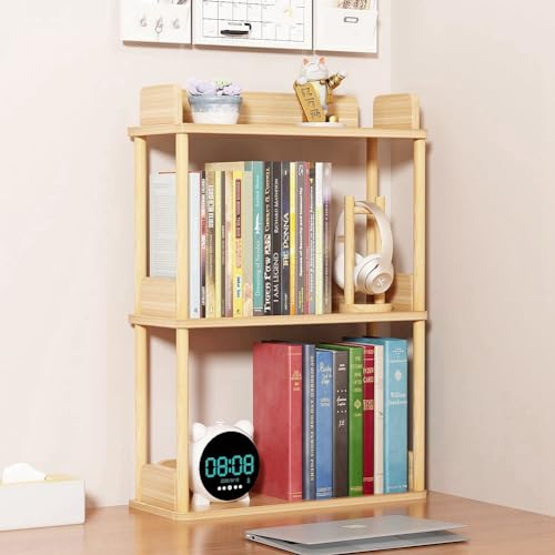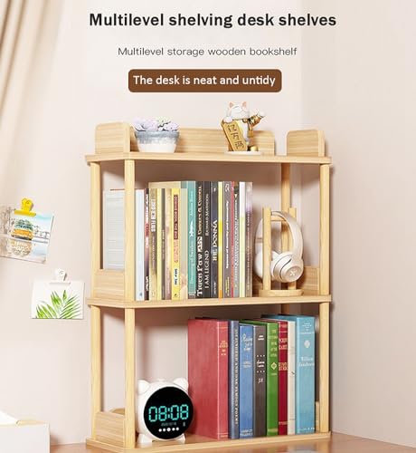Dreamhousey - رف كتب متعدد الطبقات للمكتب، مصنوع من الخشب الصلب البسيط، منظم ملفات متعدد الطبقات من دريم هاوسي (3 طبقات، لون بني اوك)