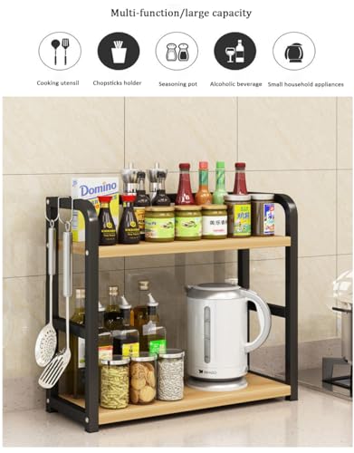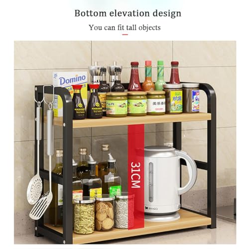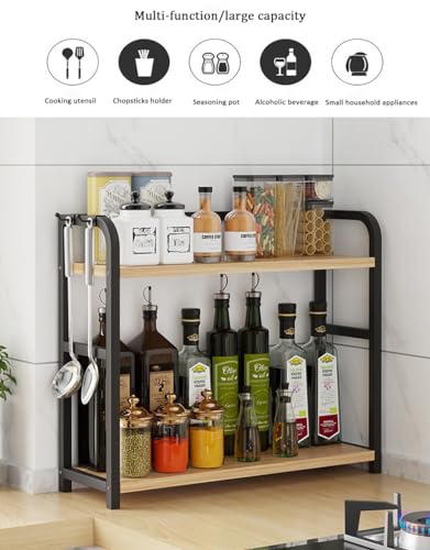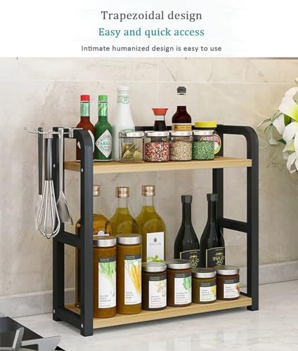 Dreamhousey - رف تخزين توابل من الستانلس ستيل + لوح خشبي من دريم هاوس، رف تخزين توابل من طبقتين، رف منظم لمستلزمات المطبخ (لون اسود + بلوط، طبقتين)، 8-3-1