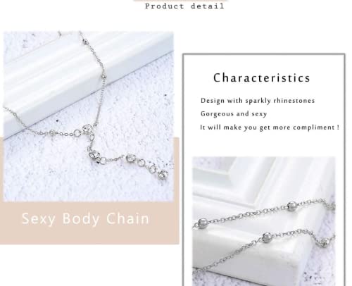 Dreamin - سلسلة جسم بوهو مرصعة بأحجار الراين من دريمين، سلاسل بيكيني فضية كريستال للصيف، حمالة صدر للشاطئ للنساء والبنات (لون فضي)