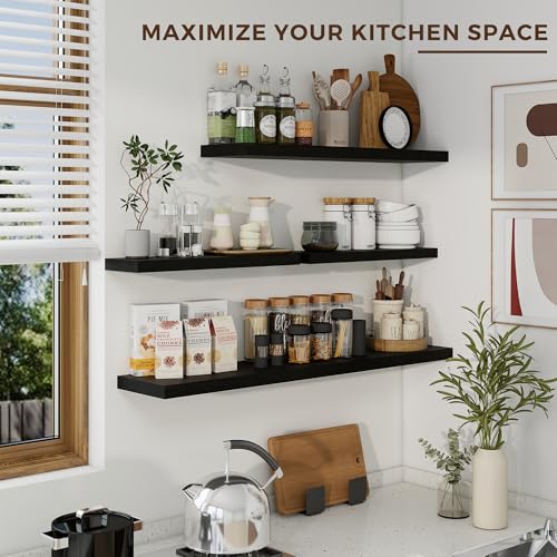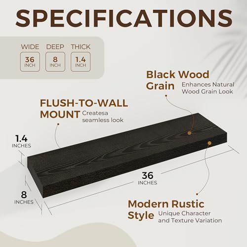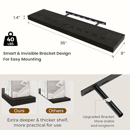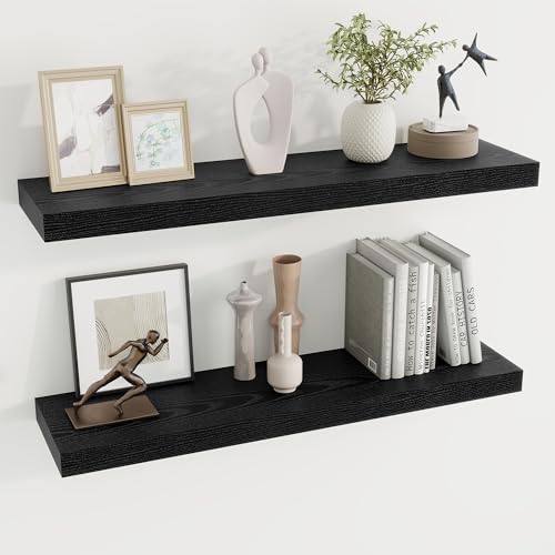 Dreamland - أرفف عائمة للحائط، أرفف كبيرة مثبتة على الحائط بدعامات غير مرئية، أرفف حائط طويلة سوداء لتخزين الديكور في الحمام وغرفة المعيشة والمطبخ والمكتب من دريم لاند، عمق 91.44 × 20.07 سم، طقم من قطعتين