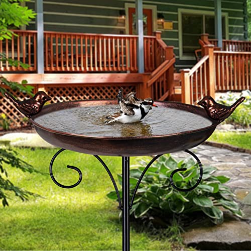 - 🐦【حوض استحمام طيور لطيف للحديقة】: المقاس - 24 × 76 سم/ 9.5 × 30 بوصة. صمم حوض استحمام الطيور المعدني الخاص بنا مع تمثال طائر معدني. لقد قمنا بترقية جوض استحمام الطيور، ويأتي بمظهر لطيف وكلاسيكي، ويعد ديكور مثالي لحديقتك. حوض استحمام الطيور المعدني سيحتفظ بكمية كافية من الماء أو الطعام لطائرك الجميل، ليكون مصدر استمتاع للجيران. مثالي لدعوة أصدقائك من الطيور للاستمتاع به كحوض استحمام أو مغذٍ للطيور، كما أن حوض الاستحمام مناسب أيضاً لتزيين الحديقة أو الفناء.