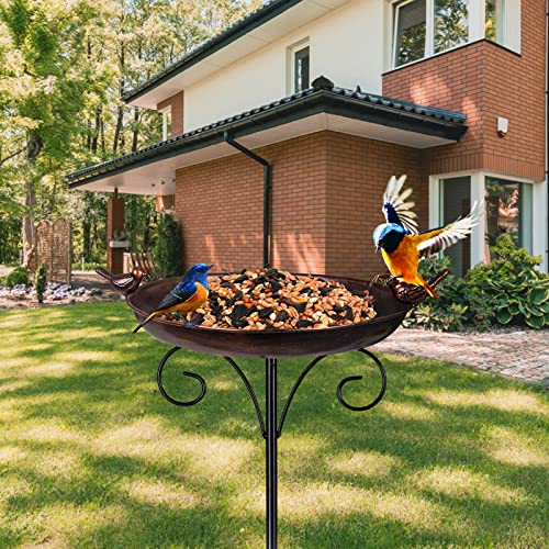 DREAMSOUL - حوض استحمام طيور معدني من دريم سول للحديقة الخارجية حديد مصبوب بأوتاد معدنية حمام طويل لديكور الفناء والحديقة قطر 25.4 سم-10 بوصة