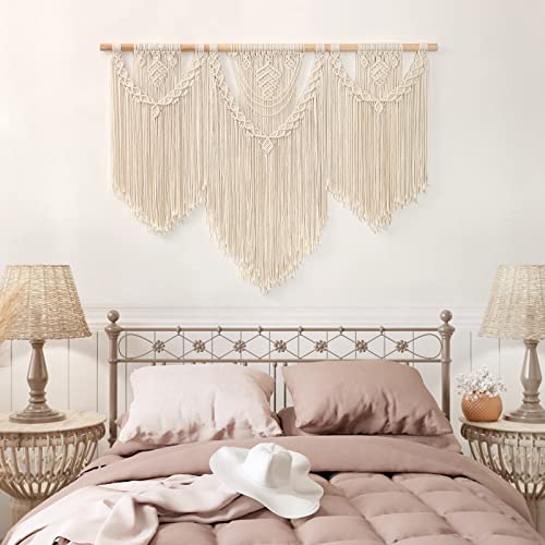 Dremisland - مكرمية كبيرة معلقة على الحائط بتصميم بوهيمي أنيق منسوجة بشراشيب حبال قطنية لديكور الحائط لغرفة المعيشة وغرفة النوم والشقق من دريمايلاند
