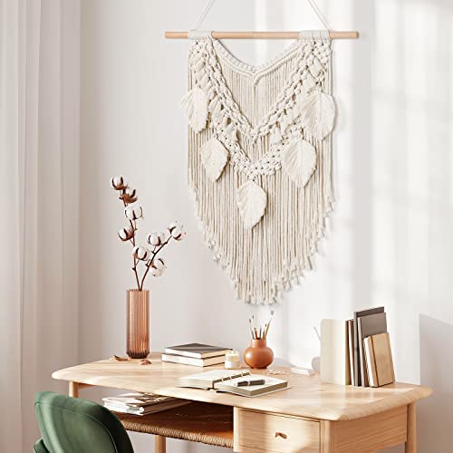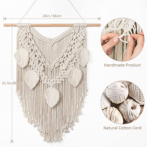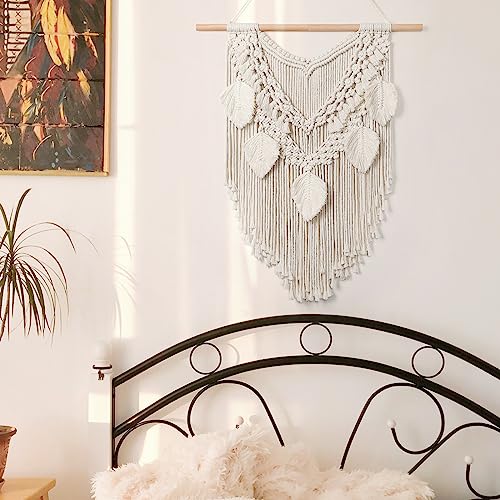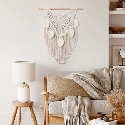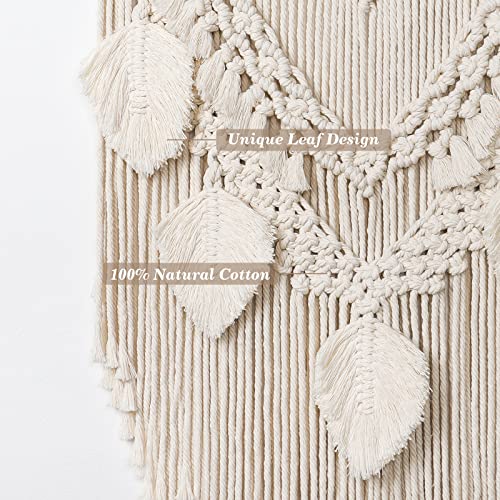 Dremisland - نسيج مكرمية قطني كبير وقابل للتعليق على الحائط بتصميم ورقة شجر بوهيمي وشراشيب لديكور المنزل وغرفة النوم من دريمايلاند، بيج