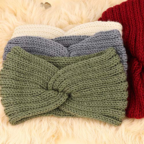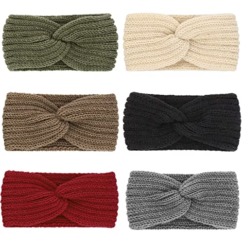 DRESHOW - مجموعة طوق رأس كروشيه شتوي للنساء مصنوعة من قماش منسوج مطاطي لتدفئة الاذن مكونة من 6 قطع لون احمر وخاكي وابيض واخضر واسود ورمادي من دريشو