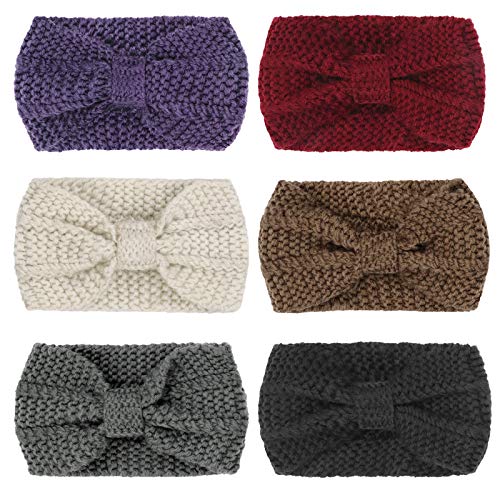 DRESHOW - دريشو عصابة راس لتدفئة الاذن من الكروشيه ناعمة محبوكة قابلة للتمدد للنساء في الشتاء، عبوة من 6 قطع