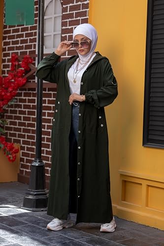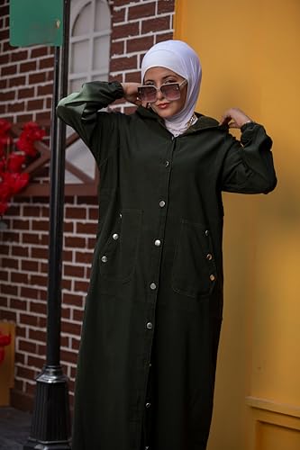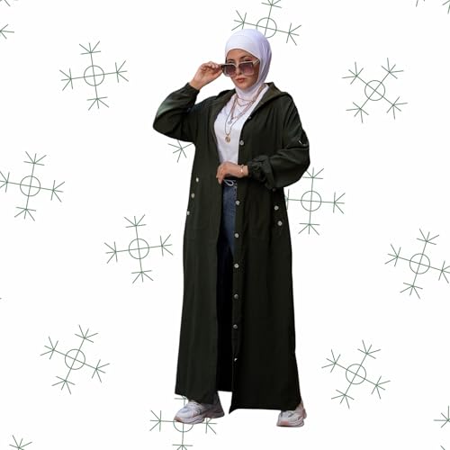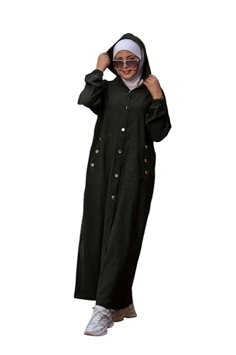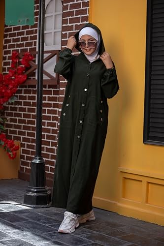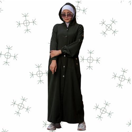 Generic - فستان للنساء من دريس كود، مصنوع من القماش التركي الناعم، باللون الزيتي، مقاسين 50-90 كجم، بتصميم كاجوال مع غطاء رأس