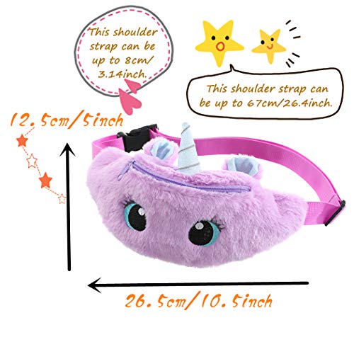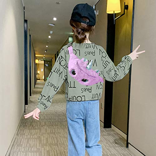 dressfan - شنطة خصر لطيفة للاطفال والبنات من دريسفان، شنطة صدر من القطيفة بتصميم يونيكورن تستخدم عند التسوق والرياضة والسياحة, أرجواني
