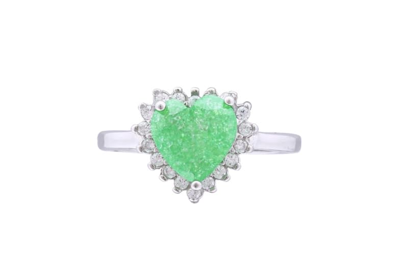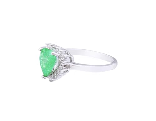 Generic - خاتم درو بتصميم قلب زمرد من الفضة الإسترلينية 925، فضي وأخضر
