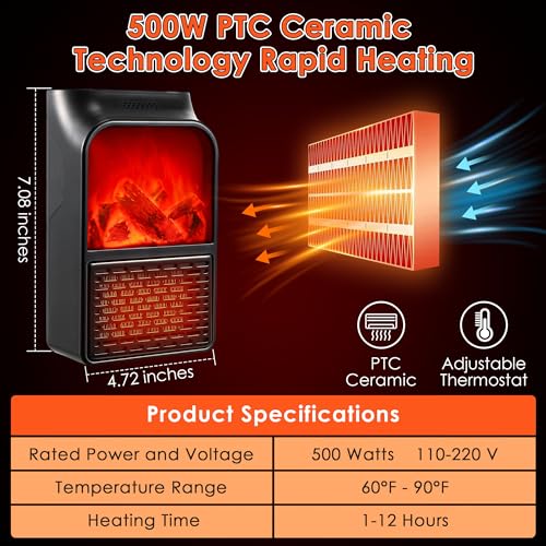 - 🔥【دفاية صغيرة آمنة وموفرة للمساحة】🔥: هذه الدفاية المحمولة مصممة للاستخدام الداخلي في المساحات الصغيرة وتبلغ أبعادها حوالي 18 × 12 × 10 سم ووزنها 1.78 كجم، يتم تركيبها مباشرة في المقبس دون شغل مساحة أرضية أو وجود أسلاك قد تسبب التعثر، مما يجعلها مثالية للأماكن الضيقة مثل المكاتب أو غرف السكن الجامعي. الدفاية الصغيرة الخاصة بنا معتمدة من CE وRoHS لضمان السلامة ويمكن استخدامها بثقة.