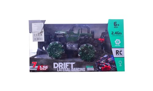 سيارة دريفت بريموت كنترول بعجلات كبيرة للتمايل الجانبي للأطفال من عمر 6 سنوات فأكثر - لون أخضر