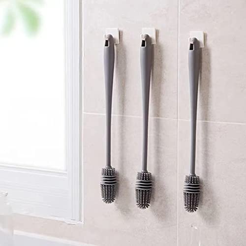 Driibubur - فرشاة زجاجة حليب الاطفال مع مقبض طويل لتنظيف اكواب الماء - القارورة - الفازة الزجاجية - اداة تنظيف زاويا المطبخ - فرشاة سيلكون لتنظيف الرقبة الضيقة للقوارير، رمادي فاتح