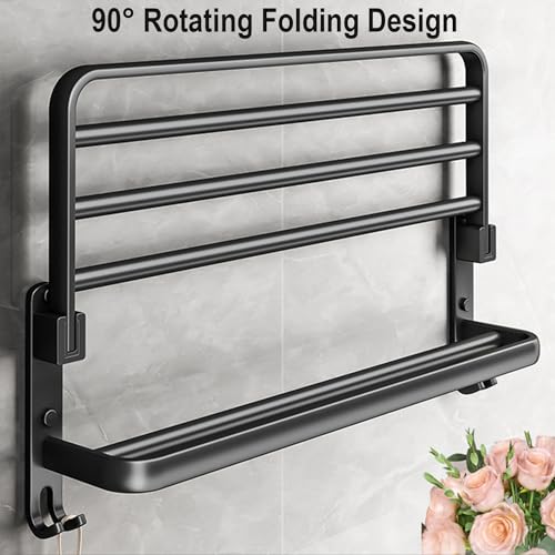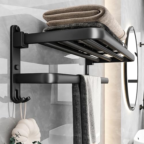 - رف مناشف الحمام المبتكر - مقاس رفوف المناشف: 22.83 × 9.56 × 7.01 بوصة / 58 × 24.5 × 17.8 سم. تتميز إكسسوارات الحمام هذه بتصميم فريد من طبقتين، وتستخدم الطبقات العلوية لمناشف الحمام وأردية الحمام والملابس. يمكن استخدام رف المناشف في الأسفل لتعليق المناشف والملابس وما إلى ذلك، وهو جميل وعملي.