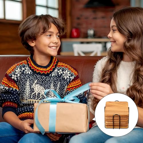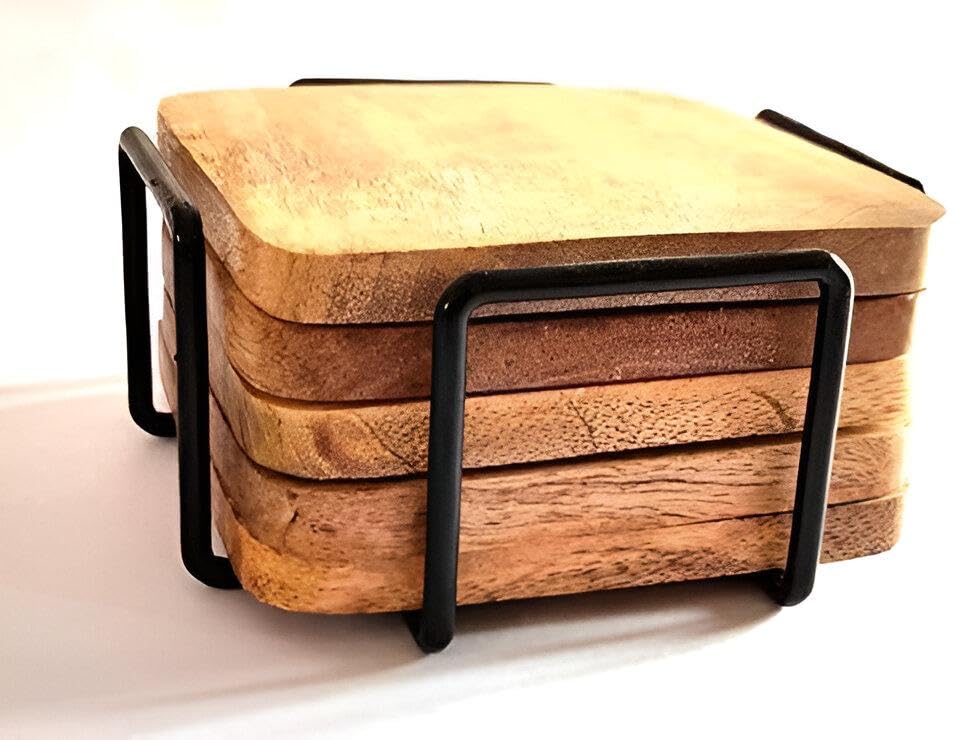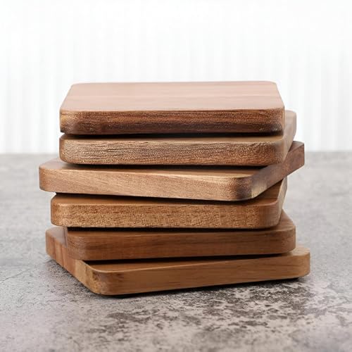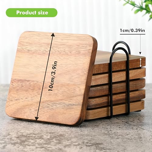 Generic - قواعد أكواب خشبية مربعة متينة مع رف معدني مقاوم للصدأ هيكل من الخشب الصلب شديد التحمل، مصممة للحفاظ على طاولات القهوة وطاولات الطعام والمكاتب خالية من البقع وآمنة 6 قطع.