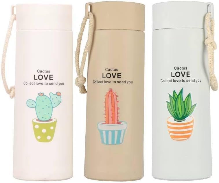 Generic - كوب شرب بالوان متعددة ورسمات مميزة يتكون من طبقة زجاج داخلية تغطيها طبقة بلاستك خارجية يأتي مع حبل وجوان غطاء داخلي