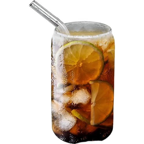 Generic - أكواب شرب – ارتقِ بتجربة مشروباتك مع مجموعة من كوب واحد بسعة 473 مل، مزوّد بغطاء من الخيزران وقشّة زجاجية قابلة لإعادة الاستخدام، مثالي للقهوة المثلجة والمشروبات الباردة