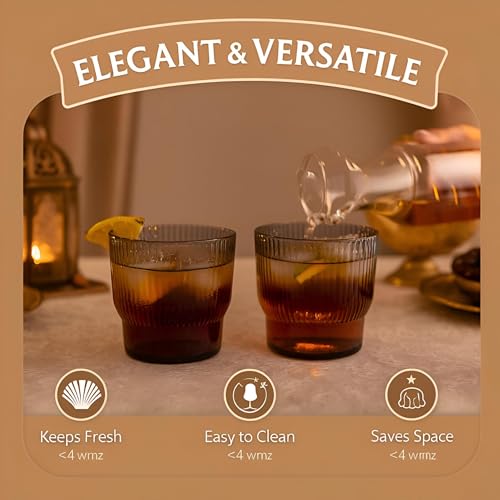 - مصممة لتكون قابلة للتكديس، توفر هذه النظارات مساحة تخزين قيمة في المطبخ دون التنازل عن الأناقة. تتناسق بسلاسة مع كل من أواني الطعام الكلاسيكية والمعاصرة، مما يضيف تنوعًا وجاذبية بصرية إلى أي مجموعة.