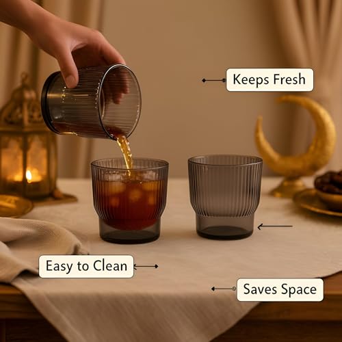 - يخلق اللون الرمادي الدخاني جمالًا عصريًا لا يتأثر بمرور الزمن، ويحول ترتيبات الطاولات البسيطة إلى عروض أنيقة، مما يجعل هذه الأكواب متعددة الاستخدامات بما يكفي للوجبات العائلية غير الرسمية وحفلات العشاء الراقية.