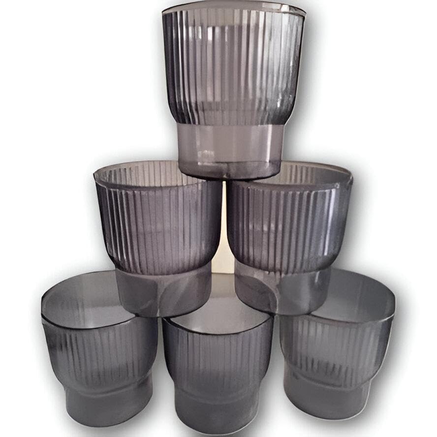 - تتميز هذه المجموعة المكونة من 6 أكواب شرب من الأكريليك بتصميم عمودي مضلع مميز لا يرفع من نمط إعداد طاولتك فحسب، بل يضمن أيضًا قبضة آمنة، مما يجعل كل رشفة أكثر راحة ومتعة.
