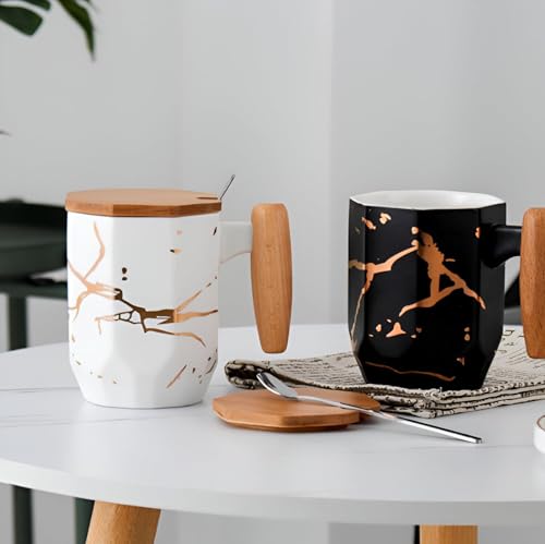 Generic - كوب انيق متعدد الأضلاع بغطاء خشبي، متين ومقاوم للحرارة، سعة 350 مل