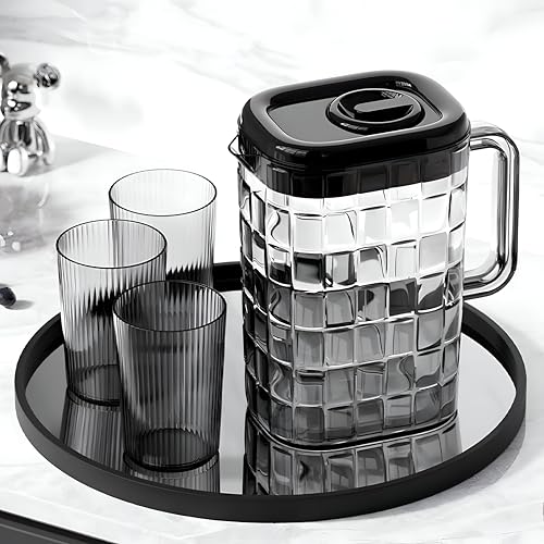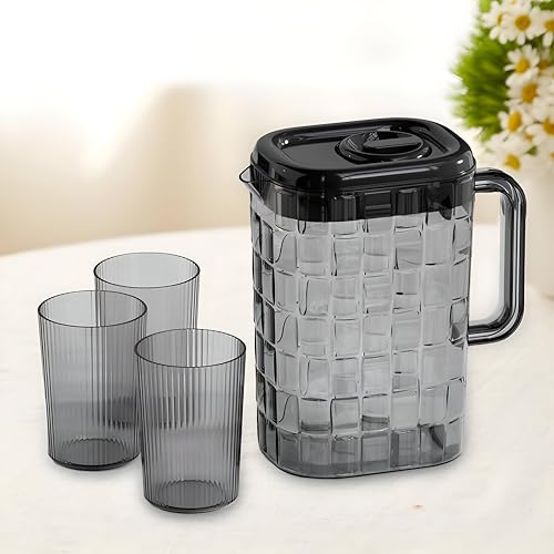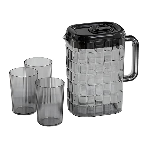 Generic - مجموعة تقديم المشروبات - تتكون من ابريق رمادي سعة 2000 مل مع غطاء ومقبض عملي و3 اكواب وفلتر مدمج مصنوع بفوهة واسعة.