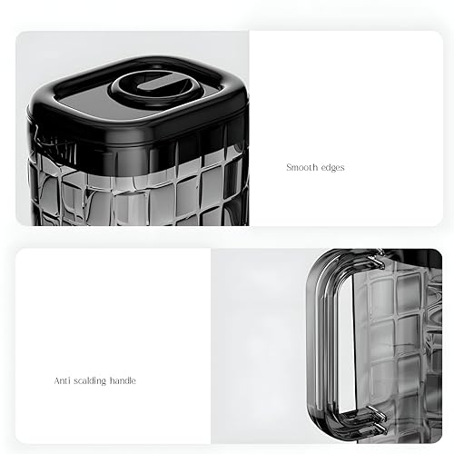 - تشتمل الميزات العملية على مقبض مضاد للحروق وحواف أمان ناعمة وشاشة فلتر مدمجة لحبس الثلج وقطع الفاكهة وقاعدة مرتفعة للثبات أثناء الصب.