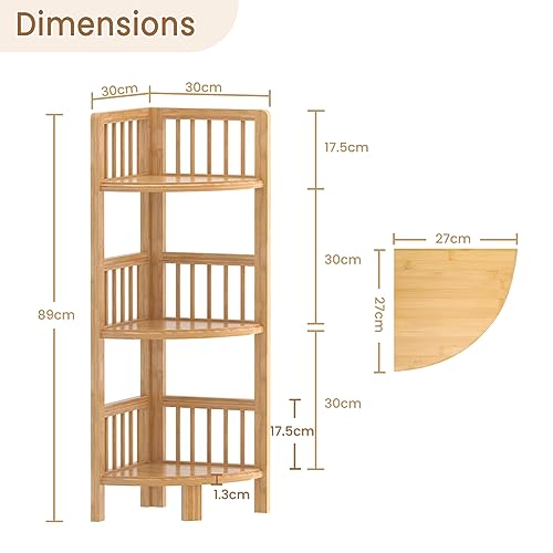 - 🌿【موفر للمساحة】يبلغ مقاس رف الزاوية المصنوع من الخيزران 89 × 27 × 27 سم، وهو صغير بما يكفي لاستخدامه في الردهة أو غرفة النوم أو غرفة المعيشة أو الزاوية أو أي مكان آخر تريده.