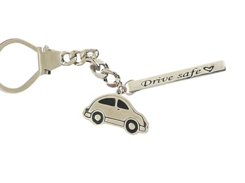 Generic - سلسلة مفاتيح منقوشة بعبارة "Drive Safe" للسيارة، سلسلة معدنية فضية مع تعليقة سيارة ورسالة ملهمة، مصنوعة من النحاس المطلي بالفضة