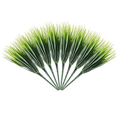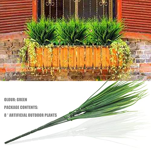 Dropfree - 8 قطع من النباتات الاصطناعية الخارجية من دروبفري، شجيرة بلاستيكية خضراء وهمية من عشب القمح في الهواء الطلق، وشاح معلق للشرفة، نباتات داخلية وخارجية للحديقة والمكتب وديكور الزفاف