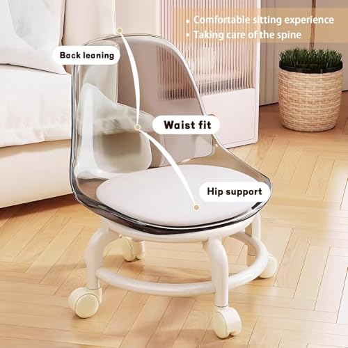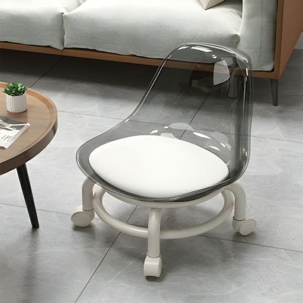 Drumstone - كرسي دوار منخفض من درومستون مع دعم للظهر، مقعد دوار من الاكريليك والمعدن مع عجلات صامتة 360 درجة، كرسي منخفض مبطن من البولي يوريثين (رمادي)