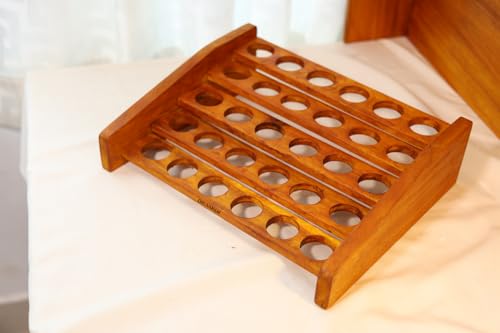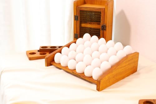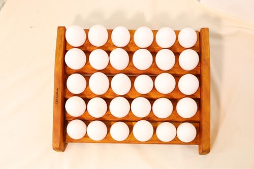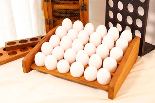 DRUVANAM - صينية حامل بيض خشبية من دروفانام | منظم رف بيض بنمط ريفي مكون من 30 فتحة | فتحات بنمط متدرج | تخزين مطبخ مصنوع يدويا من الخشب الطبيعي | لمسة نهائية من خشب البلوط الاصفر