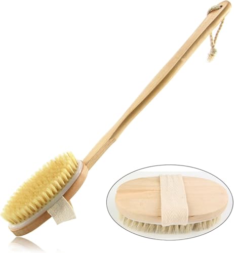 Generic - فرشاة جافة| فرشاة ظهر|فرشاة حمام للنساء | بني|شعيرات طبيعية|تزيل الجلد الميت|فرشاة للجسم الجاف| فرشاة للجسم الجاف|عبوة من قطعة واحدة