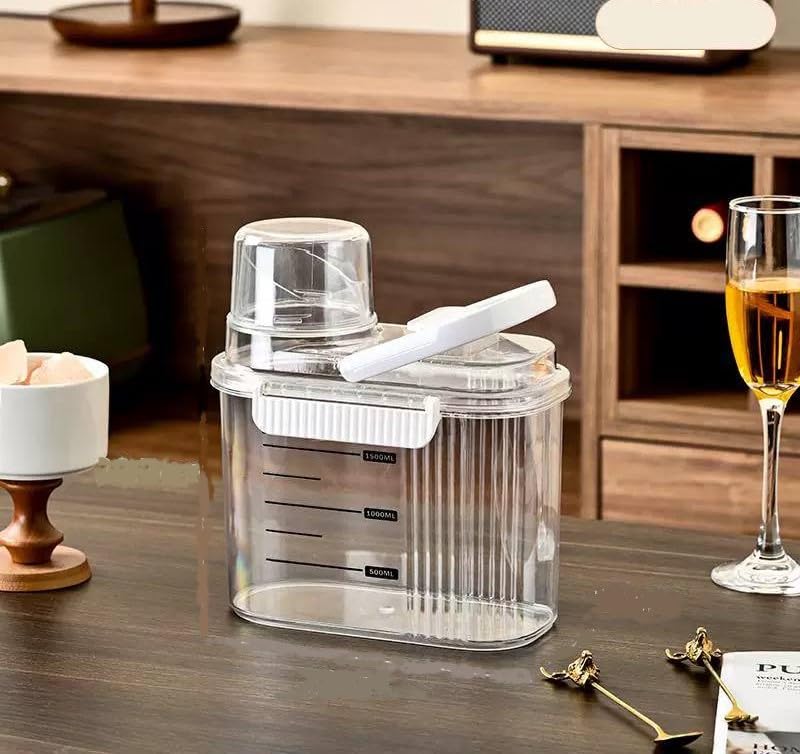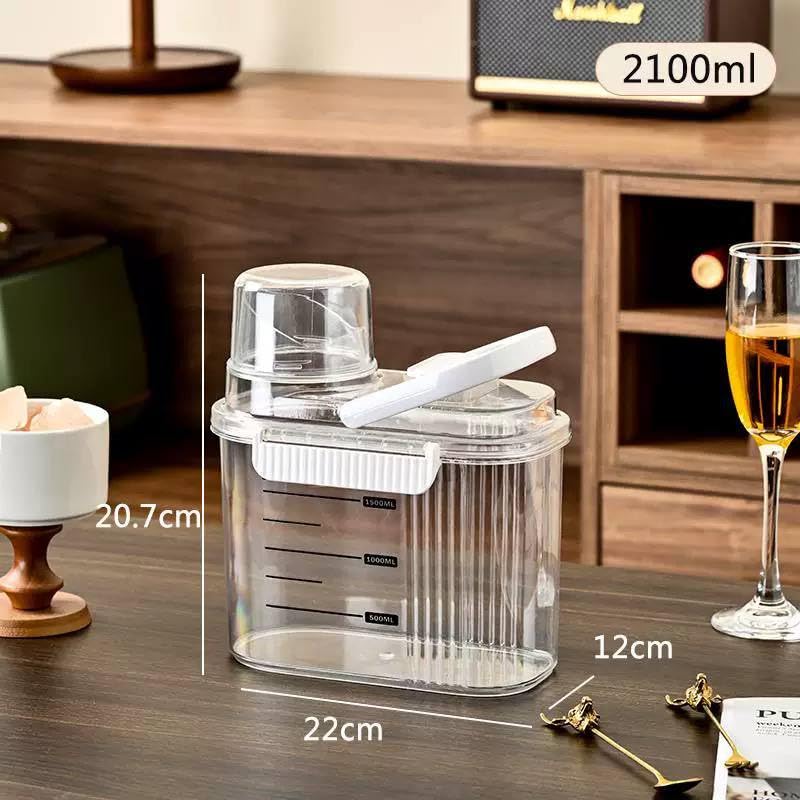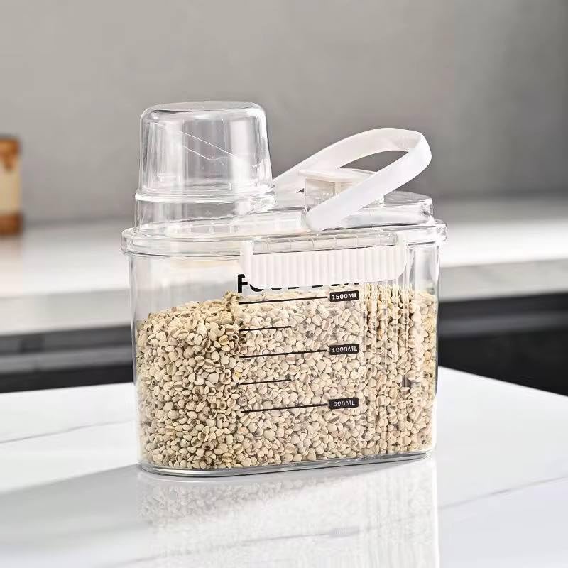 Generic - حاويات تخزين الأطعمة الجافة مع كوب قياس، منظم تخزين من الاكريليك محكم الغلق للمطبخ، صندوق تخزين طعام شفاف للدقيق والسكر والأرز | حاوية خالية من مادة BPA مع أغطية قابلة للقفل (2100 مل)