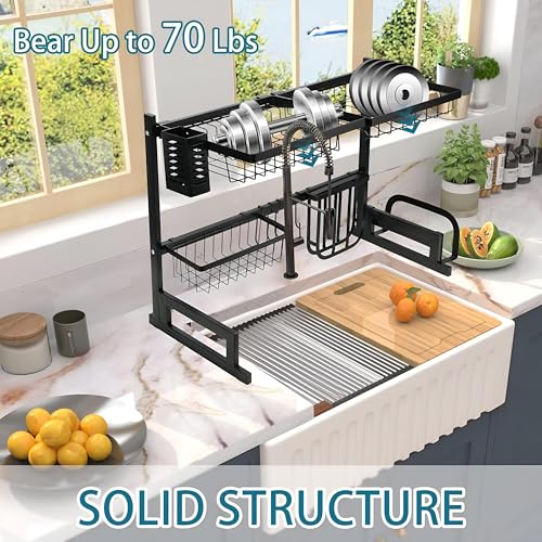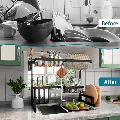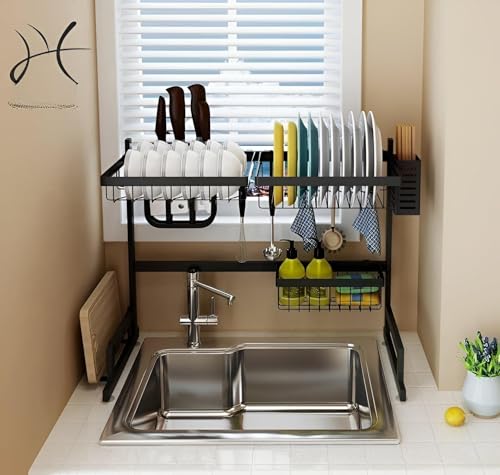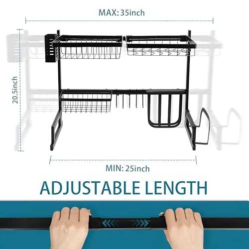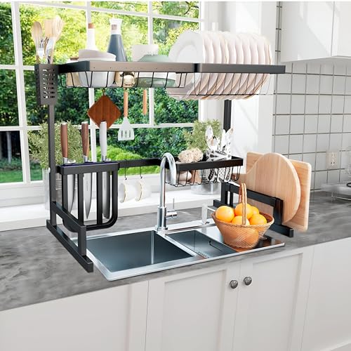 Generic - رف تجفيف - صفاية أطباق واسعة من الفولاذ المقاوم للصدأ بتصميم قابل للتعديل فوق الحوض، لتنظيم منضدة المطبخ وتخزين فعال للأطباق والبولات وأدوات تناول الطعام