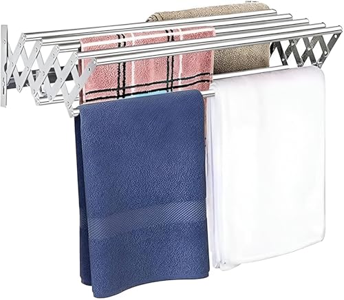 Generic - رف تجفيف متعدد الاستخدامات من الفولاذ المقاوم للصدأ يثبت على الحائط قادر على حمل أكثر من 20 كجم من الغسيل للاستخدام الداخلي (منشر من 12 حبل)