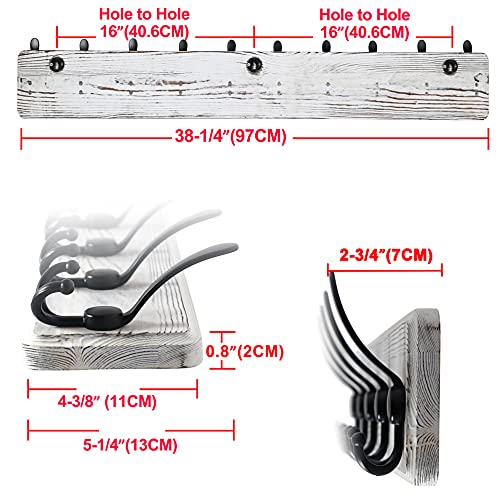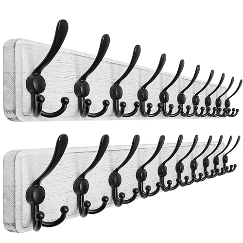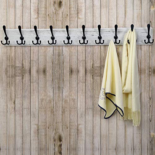 Dseap - رف معاطف خشبي طويل 97 سم مع 10 خطافات ثلاثية مثبتة على الحائط للمعاطف والملابس والجاكيتات والاوشحة وشنط اليد من دي سيب أبيض قطعتين 20.0 رطل 20.0