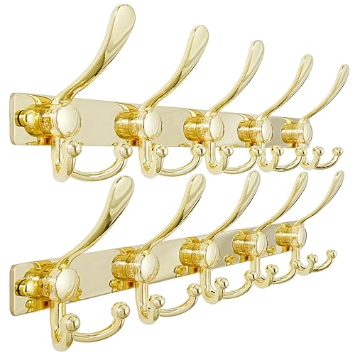 Dseap - دي سيب حامل معاطف يثبت على الحائط 2.0 من ماكس سترونج - ستانلس ستيل شديد التحمل بمسافة 16 انش 5 خطافات ثلاثية شماعات تثبت قضيب خطاف للملابس والقبعات والجاكيتات والمناشف ذهبي عبوة