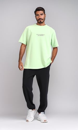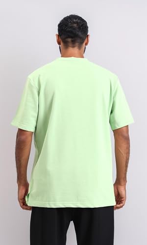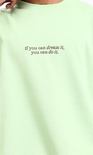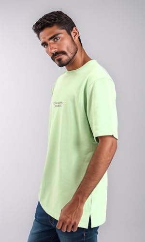 تيشرت طويل فضفاض من القطن مطبوع - اخضر فاتح
