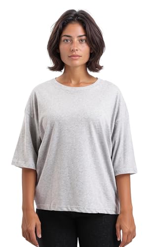 تيشرت قطن فضفاض سادة مريح - رمادي مرقش