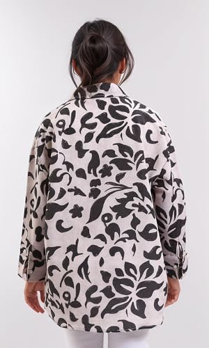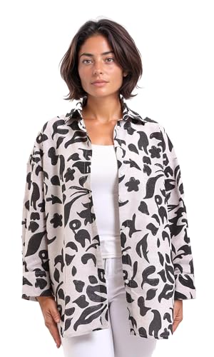 Dsisskai - قميص للنساء بأكمام طويلة وأزرار من أعلى لأسفل بنقش زهور من دسيسكاي، لون أسود وبيج (عبوة من قطعة واحدة)
