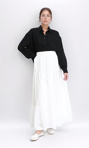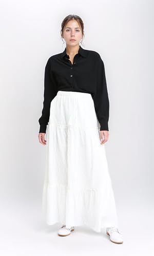 Dsisskai - جيبة ماكسي سهلة الارتداء بنقشة ذاتية للنساء من دسيسكاي، أبيض