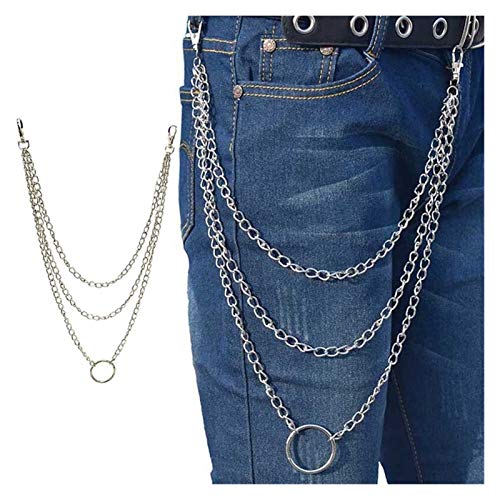 DSKLM - سلسلة بناطيل معدنية متعددة الطبقات للرجال والنساء من 12 بي (فضي)