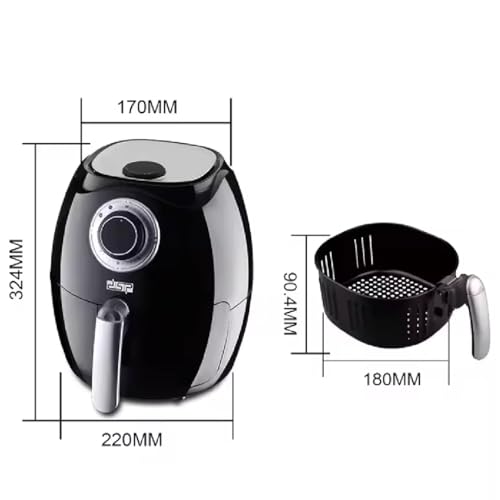 DSP - مقلاة هوائية من دي اس بي، 2.6 لتر، قدرة 1350 وات، طهي صحي خال من الزيت، دائرة حماية مزدوجة، آمنة للغسل في غسالة الصحون، عنصر تسخين من الستانلس ستيل، مقبض بارد اللمس، موديل KB2020، 1350.0 واط، أسود