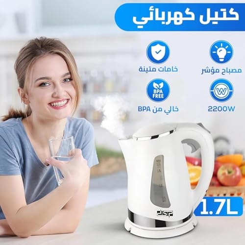 DSP - DSP غلاية كهربائية - غليان سريع، ايقاف تلقائي، حماية من الغليان الجاف، ضوء مؤشر LED، غلاية مياه من الستانلس ستيل (KK1110، 1.7 لتر)