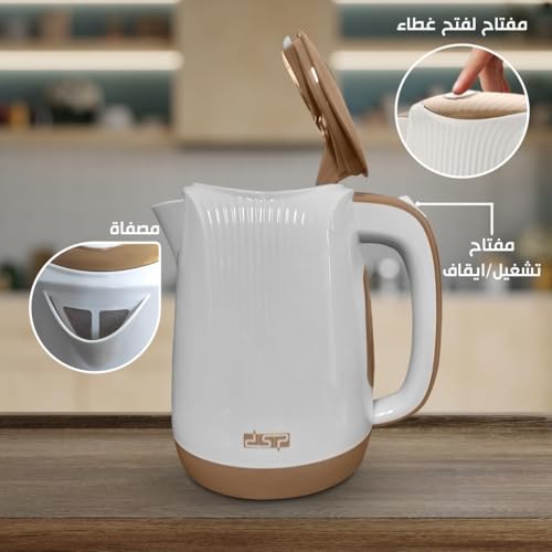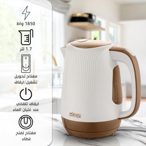 DSP - غلاية كهربائية دي اس بي، غلاية مياه 1850 وات مع خاصية إيقاف التشغيل التلقائي، تصفية قوية، حماية من الغليان الجاف، فانوس مؤشر LED، وتصميم انسيابي، 1.7 لتر، KK1002