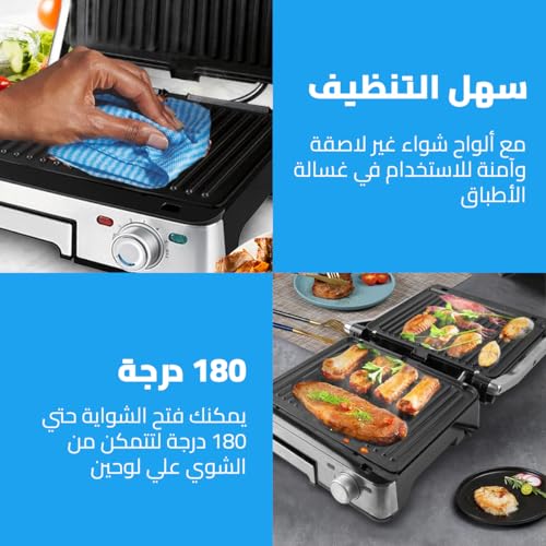 - قوة وكفاءة عالية: تضمن الشواية الكهربائية بقدرة 1800 واط طهيًا سريعًا ومتساويًا، مثالية لشواء اللحوم والخضروات وأكثر من ذلك.