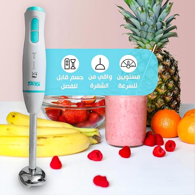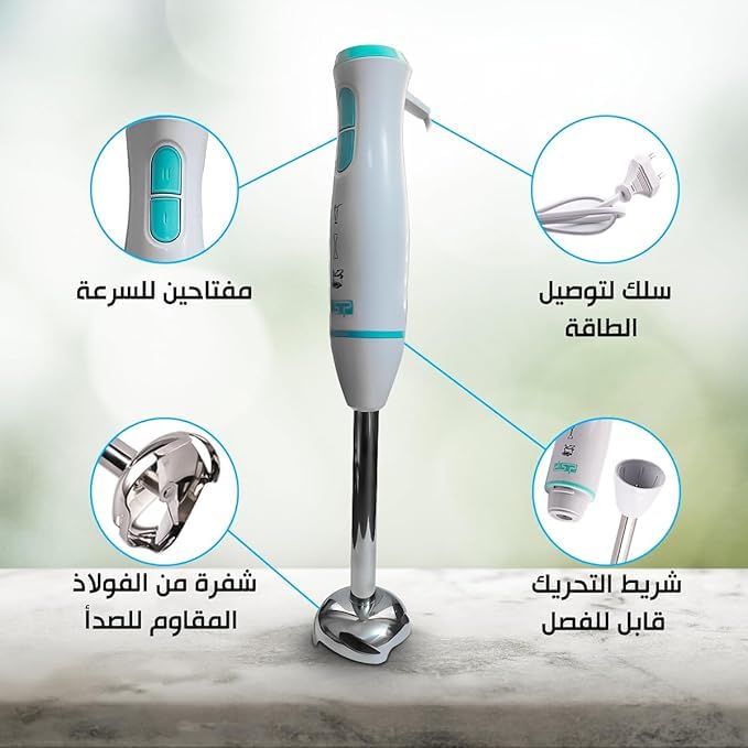 DSP - خلاط يدوي من دي اس بي بقوة 200 وات وسرعة قابلة للتعديل، محرك نحاسي بالكامل، وقضيب خلط وشفرة من الفولاذ المقاوم للصدأ قابلين للفصل، لون KM1148