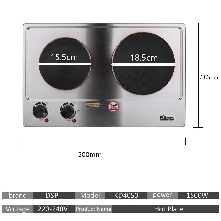 DSP - لوح تسخين بـ2 عينين KD4050 من دي اس بي، 1000وات و1500 وات، زر امامي، فضي