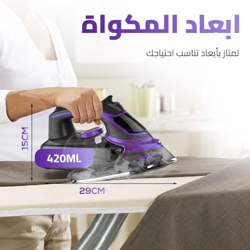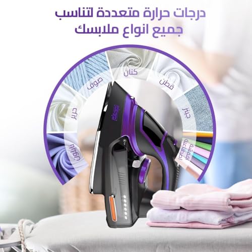- مكواة بقاعدة سيراميك مع خزان مياه ومعدل بخار مناسب للكي الجاف وبالبخار ورش الرذاذ مع خاصية التنظيف الذاتي بقدرة 2200 وات من دي اس بي، موديل KD1004-24.