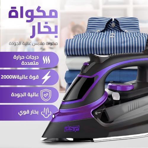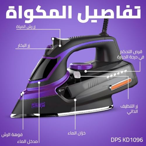 DSP - مكواة بقاعدة سيراميك مع خزان مياه ومعدل بخار مناسب للكي الجاف وبالبخار ورش الرذاذ مع خاصية التنظيف الذاتي بقدرة 2200 وات من دي اس بي، موديل KD1004-24
